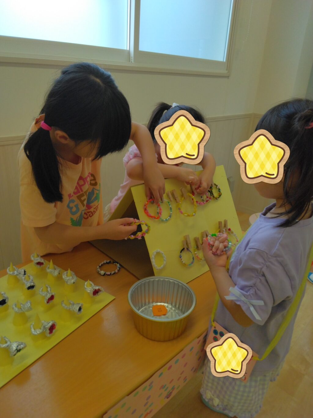 子ども達の作品で溢れたアクセサリー屋、たこ焼き・焼きそば屋、クレープ・綿あめ屋、金魚すくい…と、どこのお店も大繁盛、大賑わいでした❗