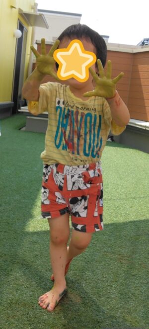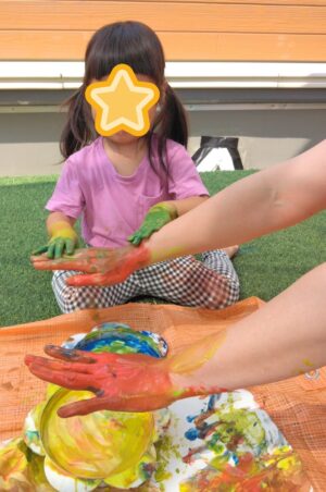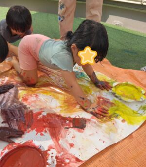 体全体で絵の具の感触を感じ、思いのままに表現し、心と体を解放しながらダイナミックに楽しむことができました🙂