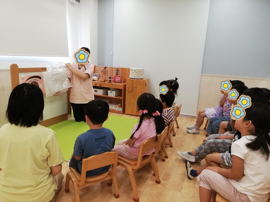 子どもたちに園長先生のお顔が見えなくてどうだった?と聞いてみると、