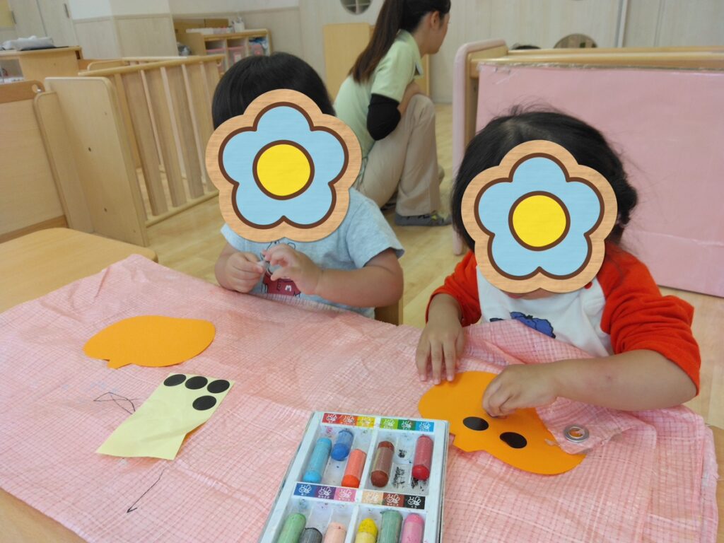 ハロウィンという行事を理解することは難しいけれど、ハロウィンの雰囲気や、おばけやかぼちゃなどで楽しく遊ぶことができました。遊びながら、学ぶ。遊んでいるうちに、楽しいことは自然と記憶に残っています。これからも子どもたちの「たのしい!」を大切にしながら過ごしていこうと思います。