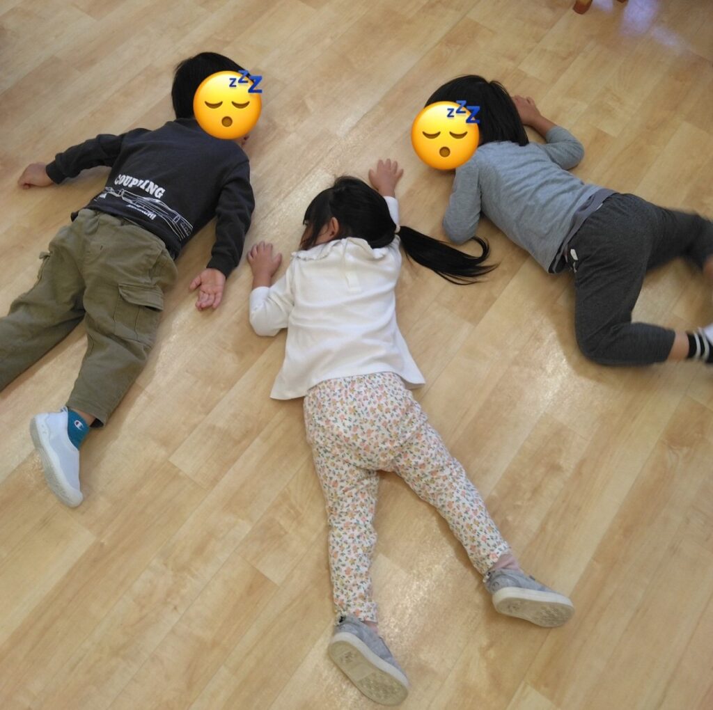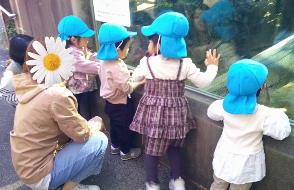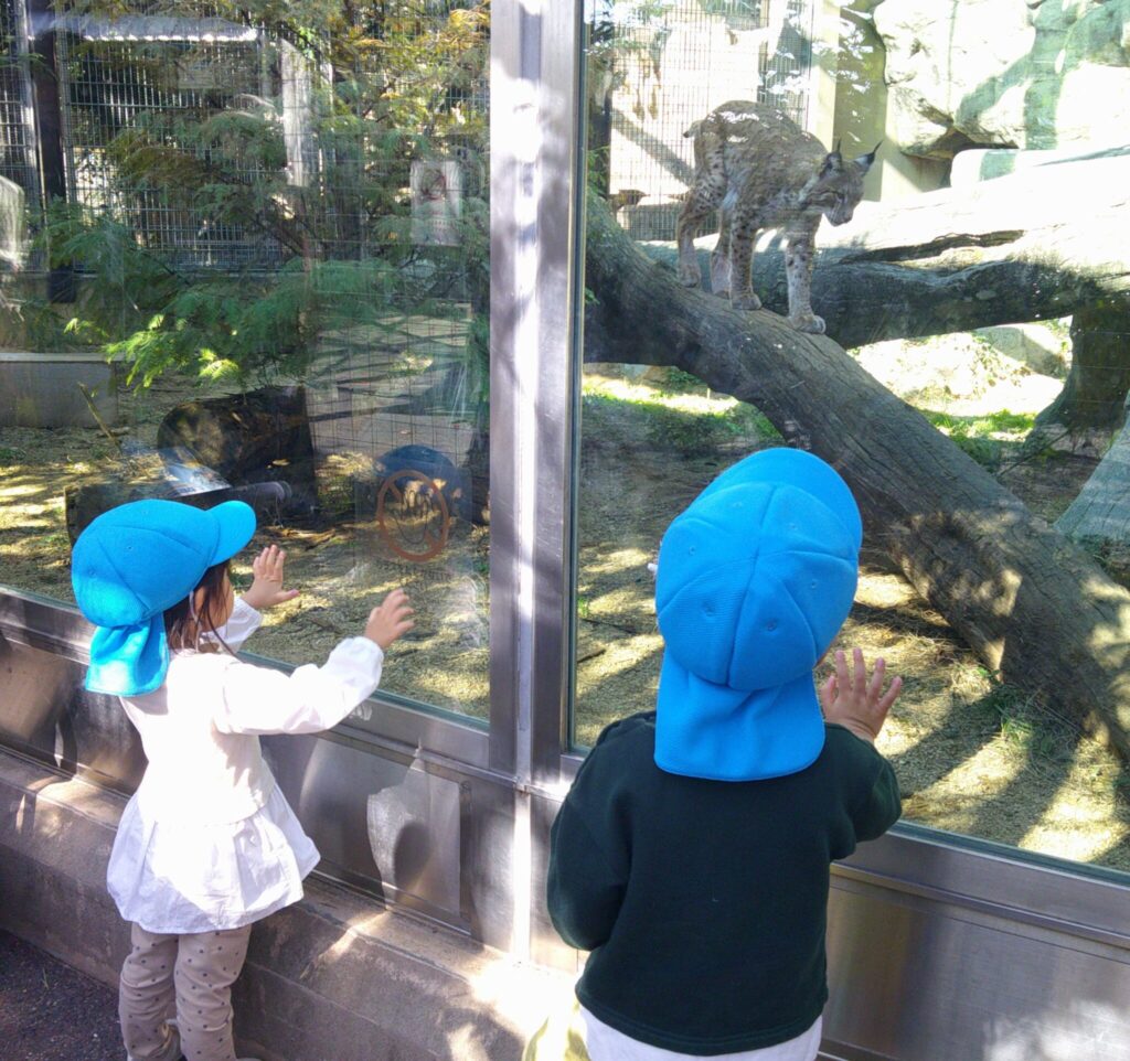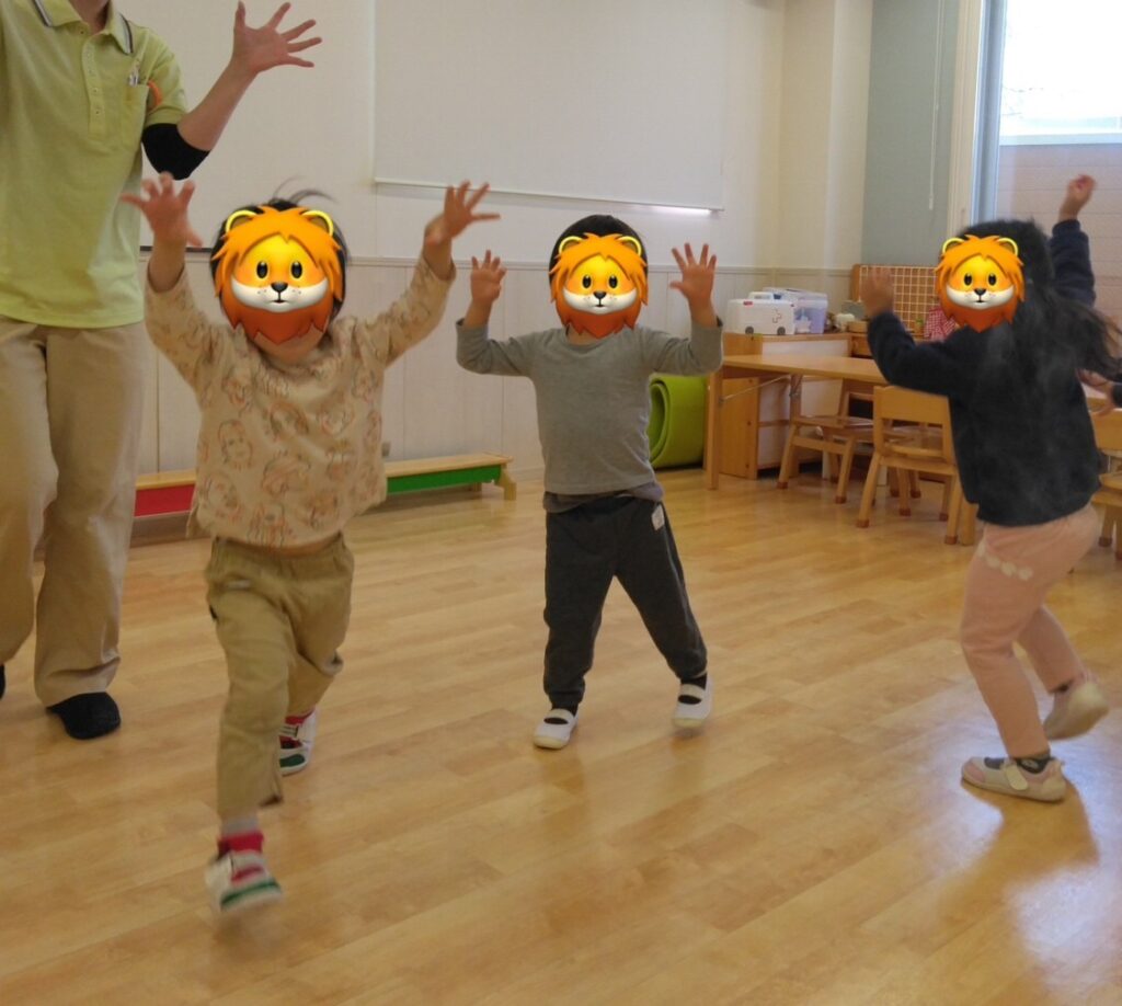 動物園に到着すると、「どうぶつえんにいこう🎶」と歌いながら様々な動物になりきる子ども達😊うさぎ🐰になって跳ねたり、馬🐎になって駆けたり、ライオン🦁のように大きな声を出してみたり、「ねんね(寝る)している動物さんもいるかな~」とゴロンゴロンと寝転んでみたり… 「コアラ🐨さんはギューッて抱っこしているんだよね!」と先生やお友達とハグ💕をしたりして楽しんでいました。