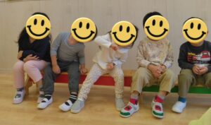 まずは、電車に乗る時のお約束(騒がず、静かに座る)を聞き、ガタンゴトンと体を揺らしながら電車に乗っている気分を味わいました🚃🎵