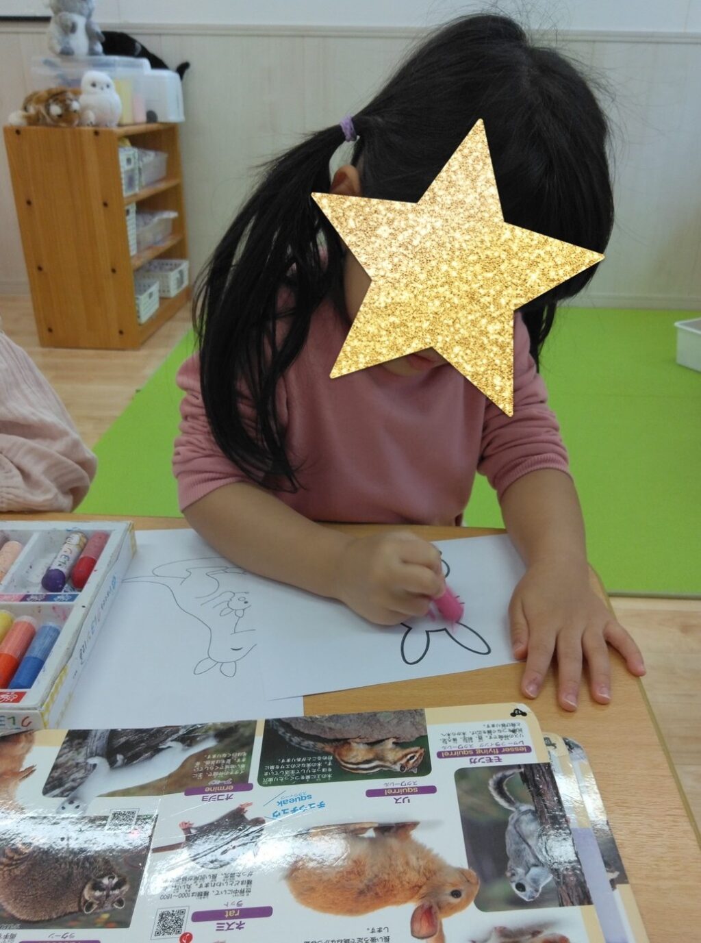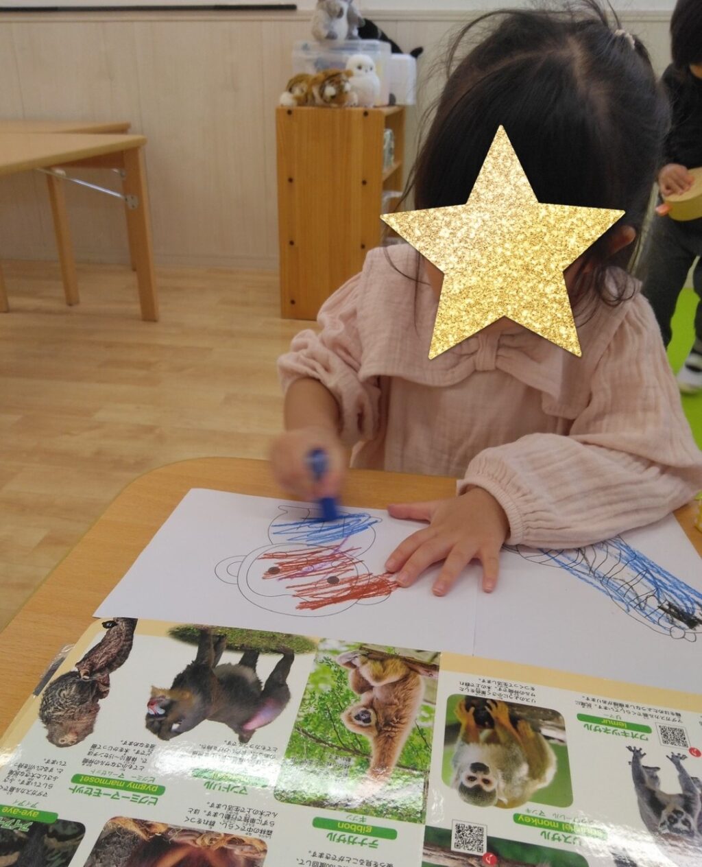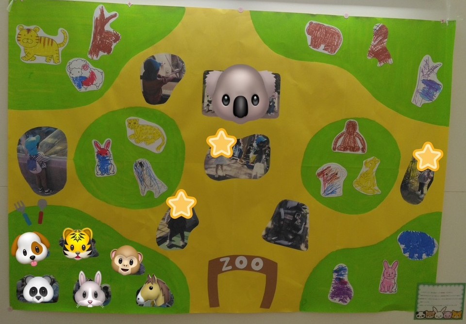 後日、遠足を振り返りながら子ども達と一緒に「動物園MAP🗺️」を作りました。「おさるさん、可愛かった」「ぞうさん、大きかったね~」と思い思いに感じたことを話しながら、印象に残った(好きな)動物の塗り絵を楽しみました🖍️