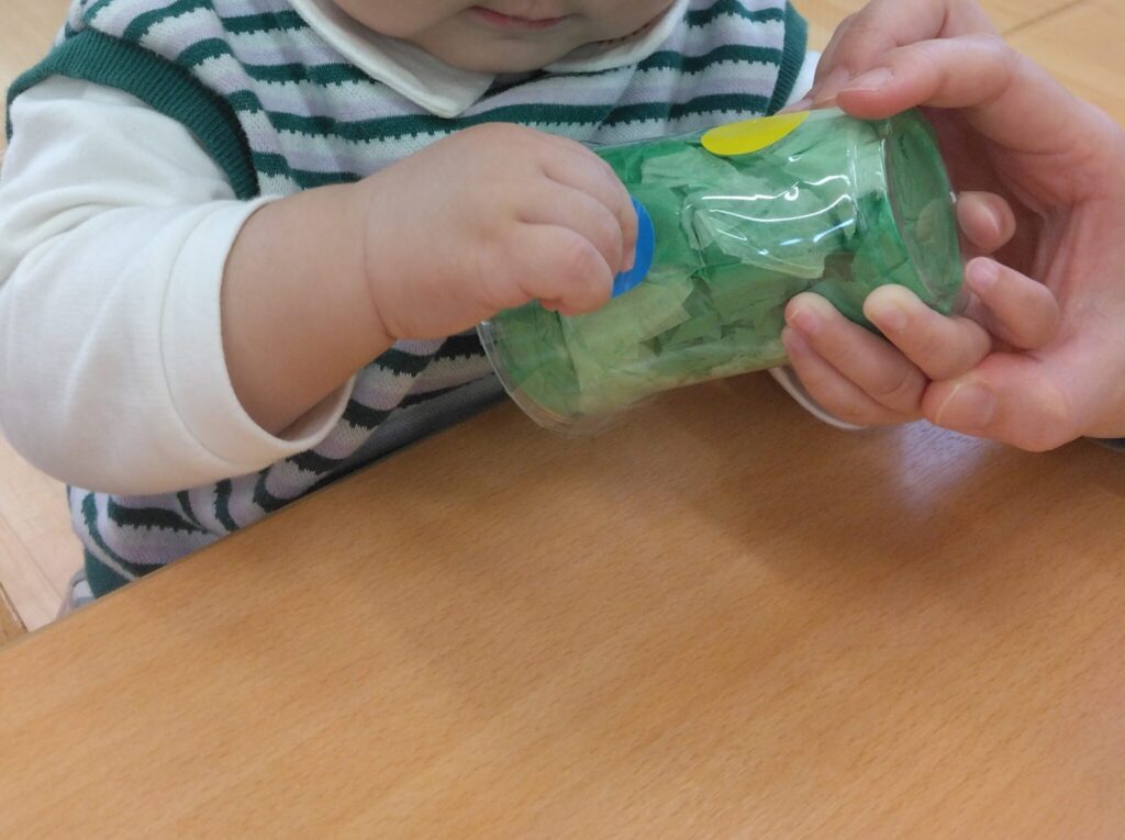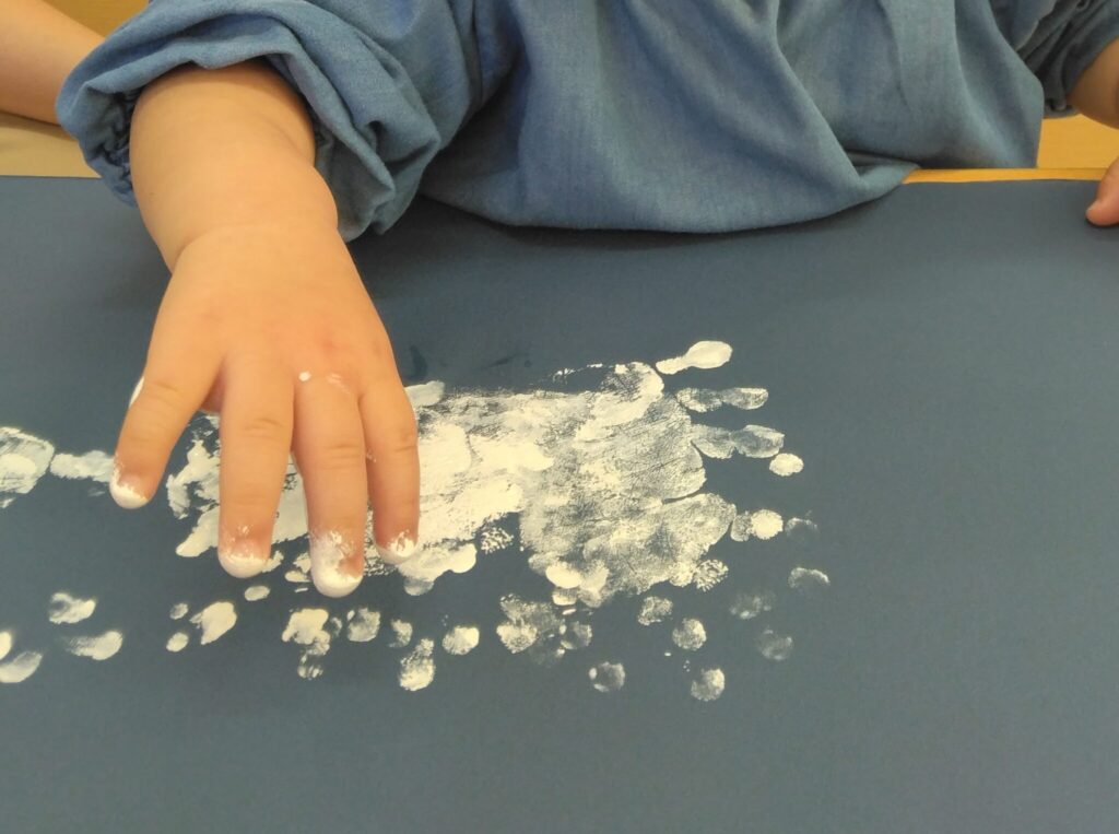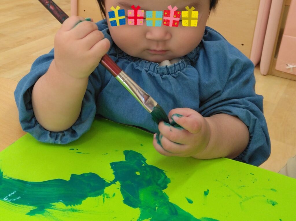 家庭ではお部屋の汚れが気になってなどなかなかできないことも保育園ではのびのびと楽しむことができます。0歳児なのでお口に入れないかの見守りは必要ですが、子どもたちの発想に任せてあそばせると子どもたちの力は無限に広がってきます。大人の固定観念に囚われず、子どもたちの独創を見守り、楽しんで表現する力を伸ばしていって欲しいと思います。
