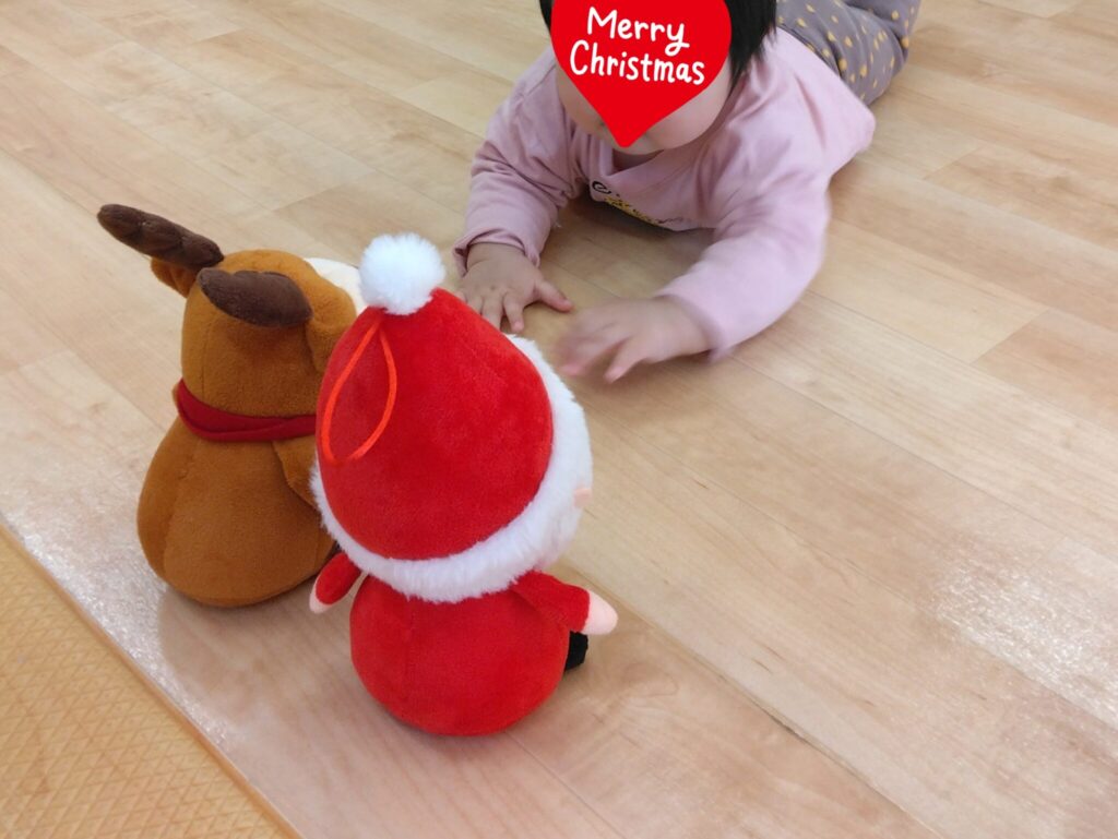 12月に入り、イルミネーションやサンタクロースの装飾と保育園もクリスマスモード一色となり、子どもたちもドキドキワクワク♥️目をキラキラさせてとっても嬉しそうです🎅保育室にもクリスマスの絵本やサンタクロースやトナカイのぬいぐるみを準備するとはじめましてのご挨拶…そーっと近づいてにんまり😃ぬいぐるみを抱っこしてよしよししたり、保育士に絵本を読んでもらったり、ゆめ組の子どもたちもクリスマスを心待ちにしています。