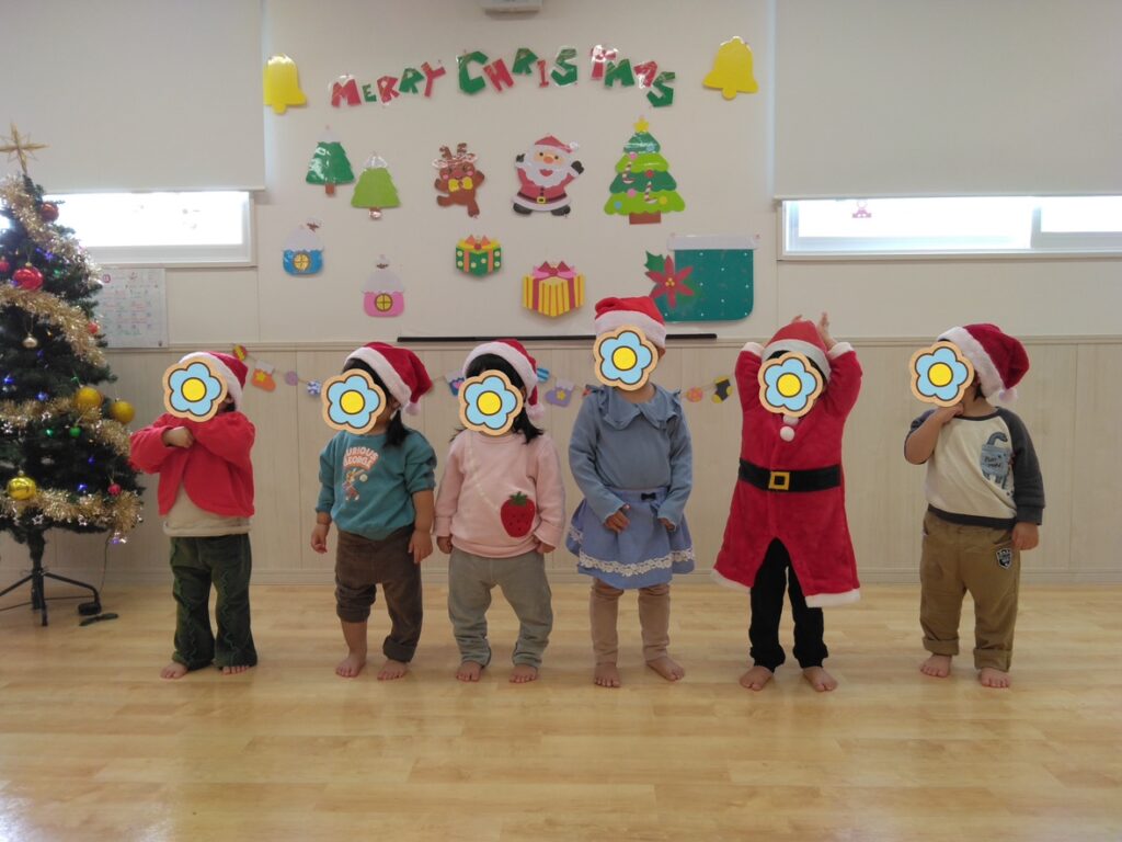 クリスマスとはどんな行事なのか、子どもたちが分かりやすく理解ができるように絵本や歌、手遊びなど伝わりやすいと思うものすべてで伝えました。クリスマスの雰囲気を感じながらサンタや、トナカイなどクリスマスに興味を持てくれました。子どもたちの「なんだろう?」「知りたいな」を大切にしながら日々過ごしていきたいと考えています。