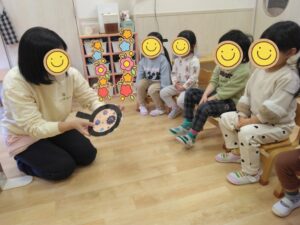 「トイレ!!」「おやつ!!」など自分たちが日々いつ手洗いをしているかを思い出し、答えてくれる子もいました。