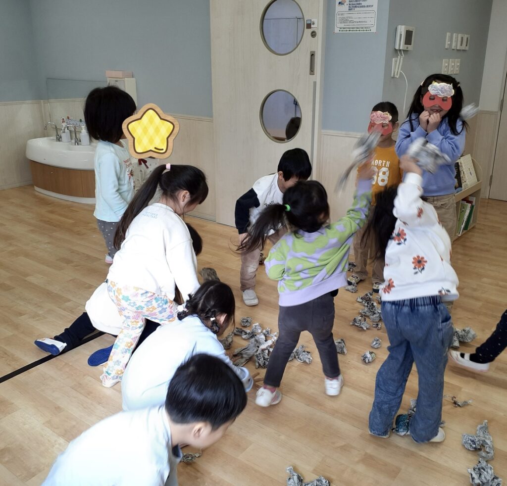 節分の季節の変わり目に起こりやすい病気や災害などの邪気を追い払い、福を呼び込むといった意味を伝えることができ、また実際に経験して体感することで、その意味を理解できたのではないかと思います。子ども達にたくさんの福が訪れますように…⭐