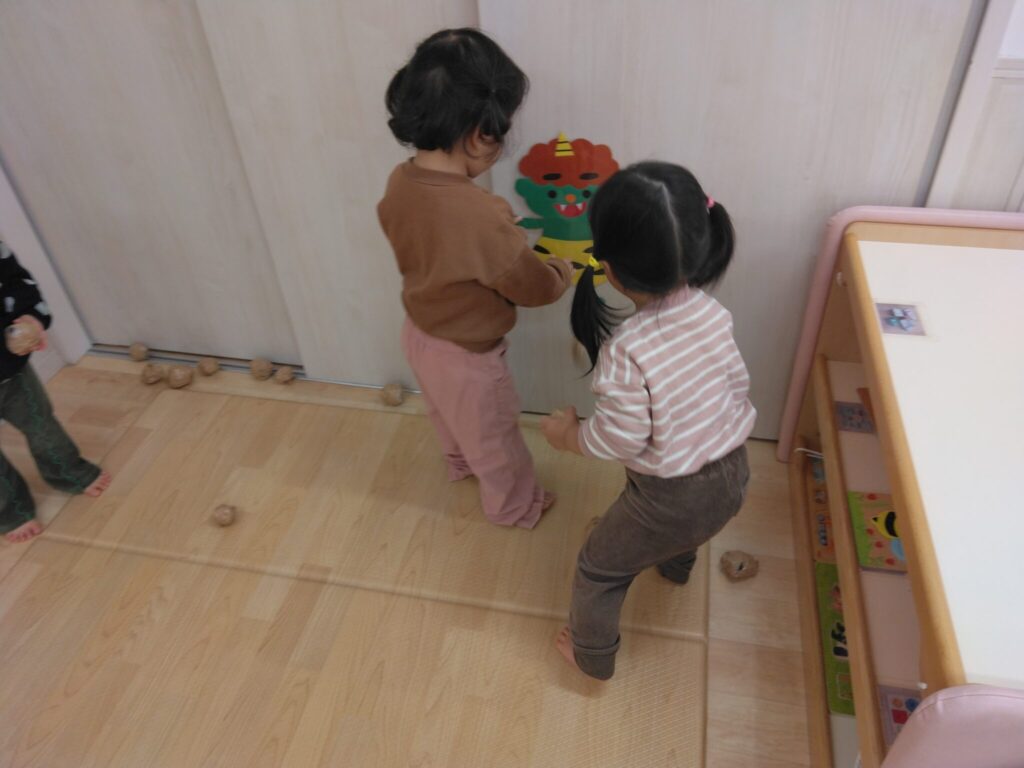 2/3は節分でした。豆まきの歌や、鬼の歌が大好きで毎日歌っていました🎶子どもたちが節分を知り、楽しんでいる姿を一部ご紹介します✨