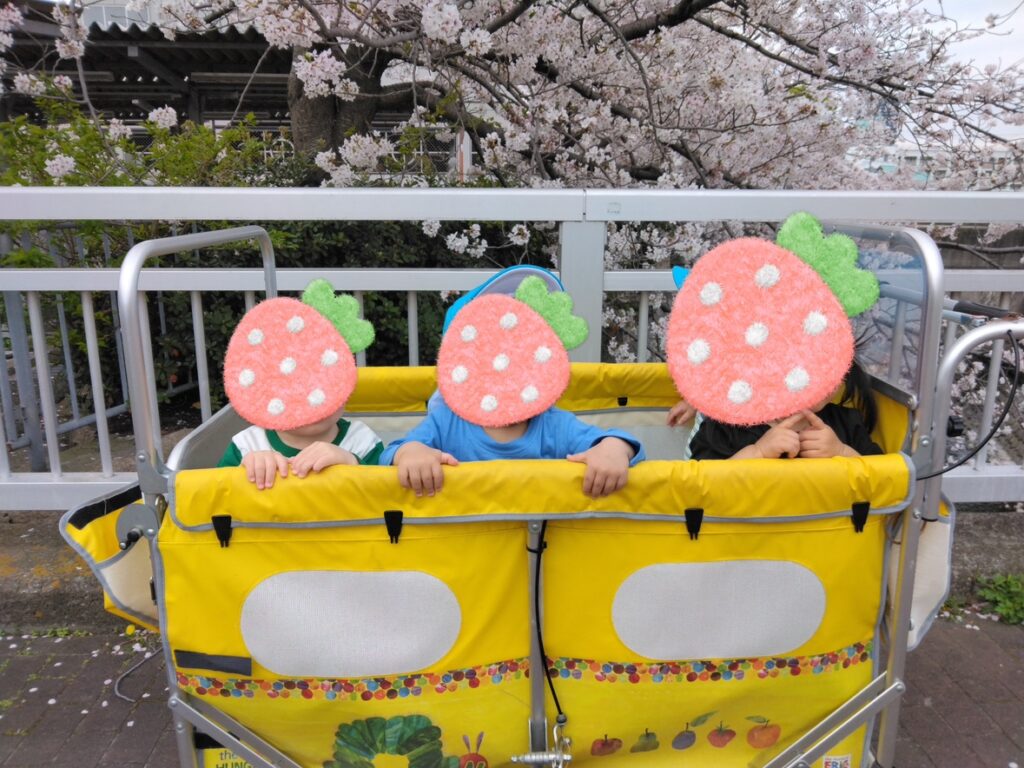 暖かくなってきてお散歩日和になってきました。ふたば組の子ども達はみんなお散歩が大好き🌟お散歩カートの揺れも景色を眺めるのも楽しくてニコニコの笑顔で散策を楽しんでいます。季節の移り変わりを気候や植物で感じながら今年度も自然を楽しめたらいいなと思います。